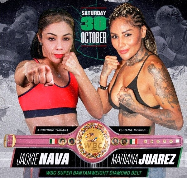 Two legendary female fighters former multi-time world champion Jackie Nava (38-4-4, 16KO) will finally face off against also former-multi-time world champion Mariana “Barbie” Juarez (55-10-4, 19KO) for the vacant WBC super bantamweight Diamond title on Saturday from Auditorio Municipal in Tijuana, Mexico.